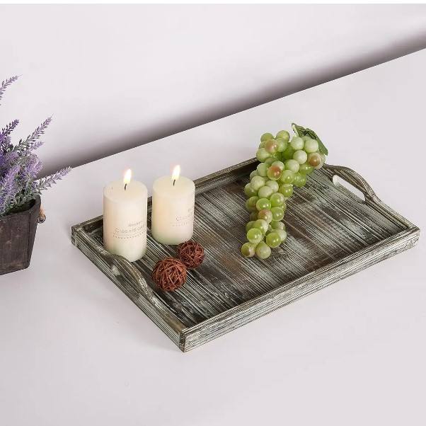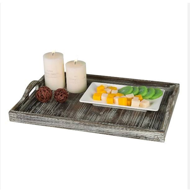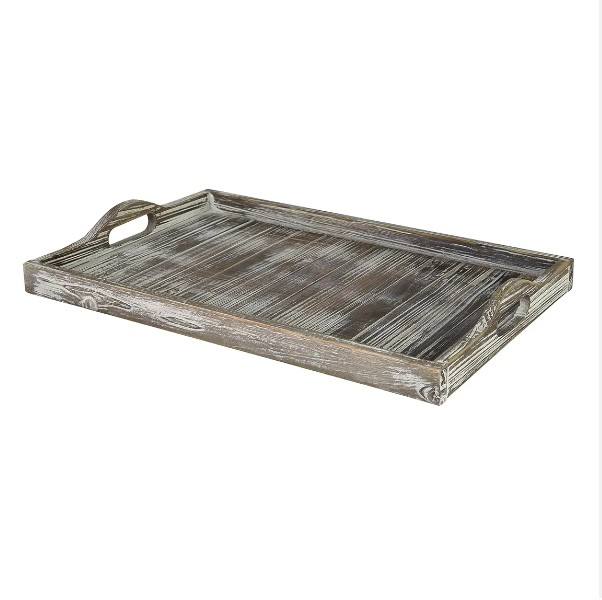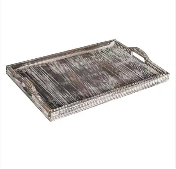 ถาดไม้ทำจากไม้สนขนาดใหญ่พร้อมที่จับถาดเสิร์ฟในร้านอาหารและโรงแรม