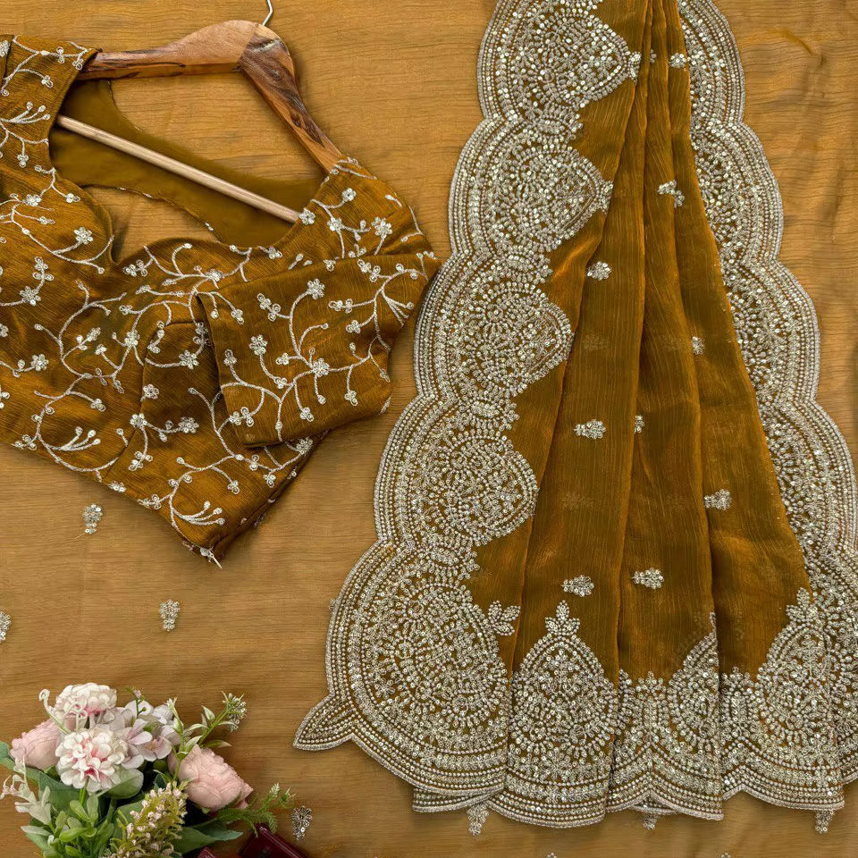 งานส่าหรี:งานปักด้ายและเลื่อมที่ประณีต