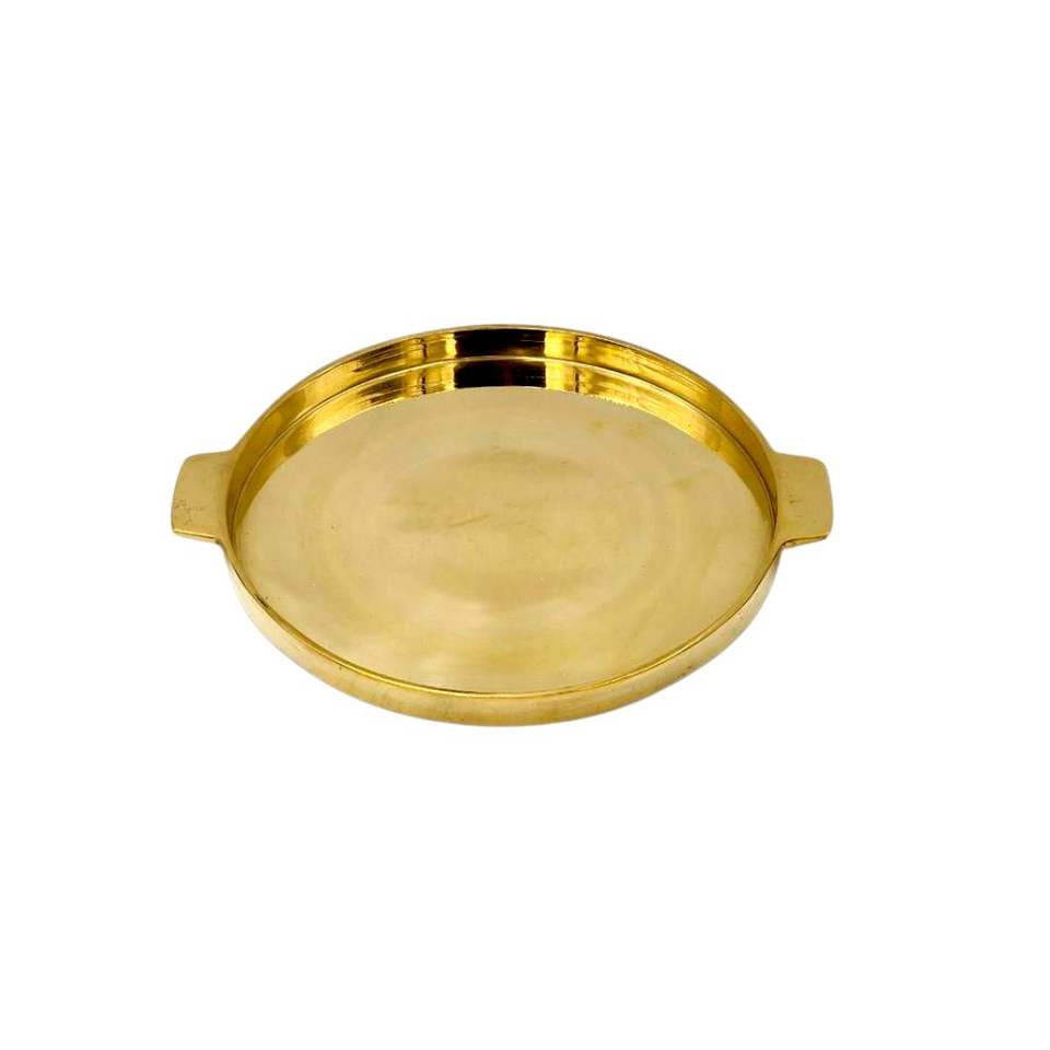 จานสเต็กทองเหลืองกลม10 "แบบพรีเมี่ยมพร้อมที่จับสำหรับเสิร์ฟสเต็กในร้านอาหารโรงแรมของที่ระลึกหรือไอเดียเป็นของขวัญที่สมบูรณ์แบบ