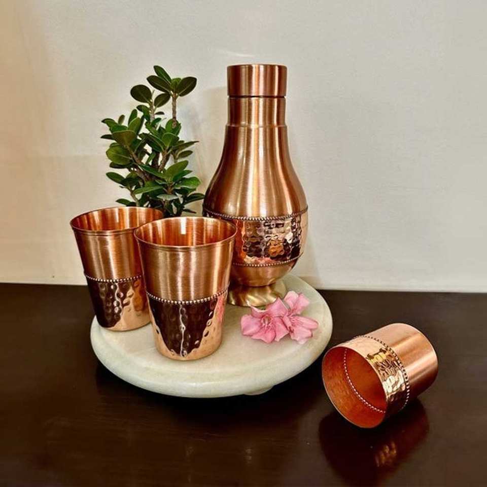 ขวดน้ำทองแดง100% พรีเมี่ยมภาชนะใส่เครื่องดื่มที่ทนทานแฟนซีผลิตและส่งออกจากอินเดีย
