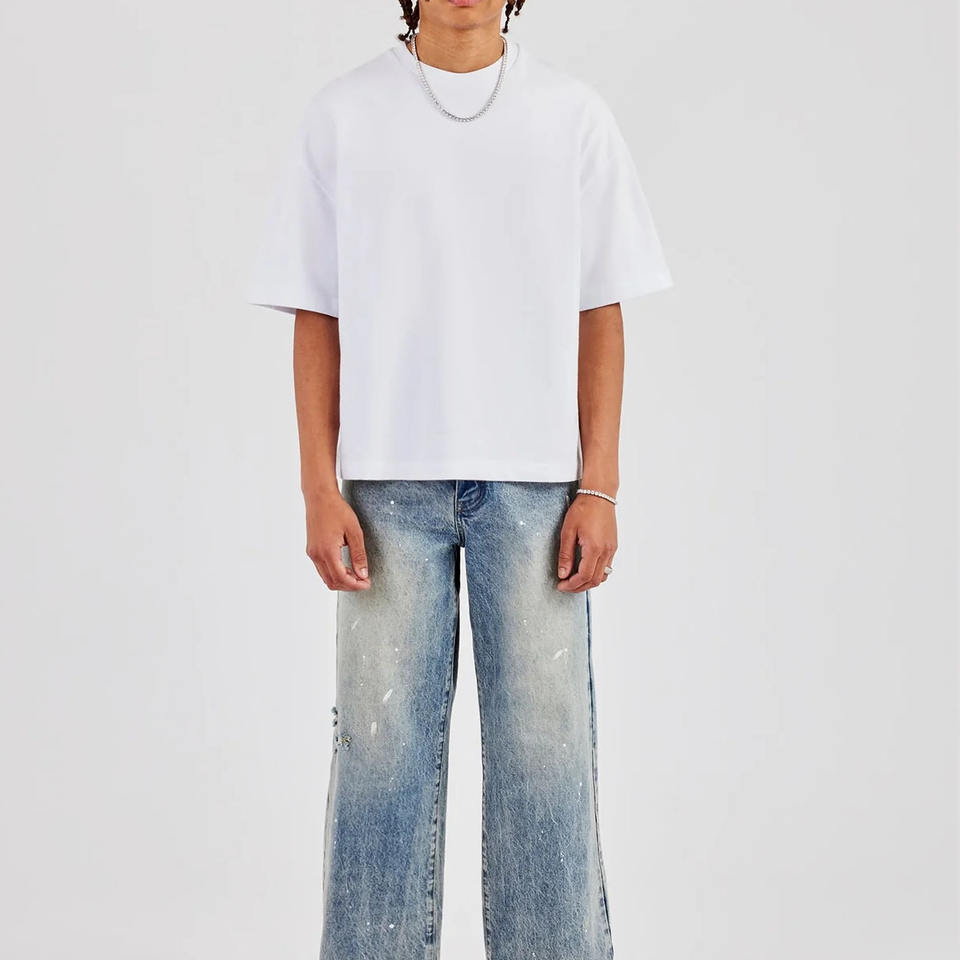 เสื้อยืดผู้ชายทรงบ็อกซี่ ผ้าฝ้ายพรีเมียม 100% ระบายอากาศ แห้งเร็ว ทนทาน เป็นมิตรกับสิ่งแวดล้อม เหมาะสำหรับใส่ลำลองทุกวัน