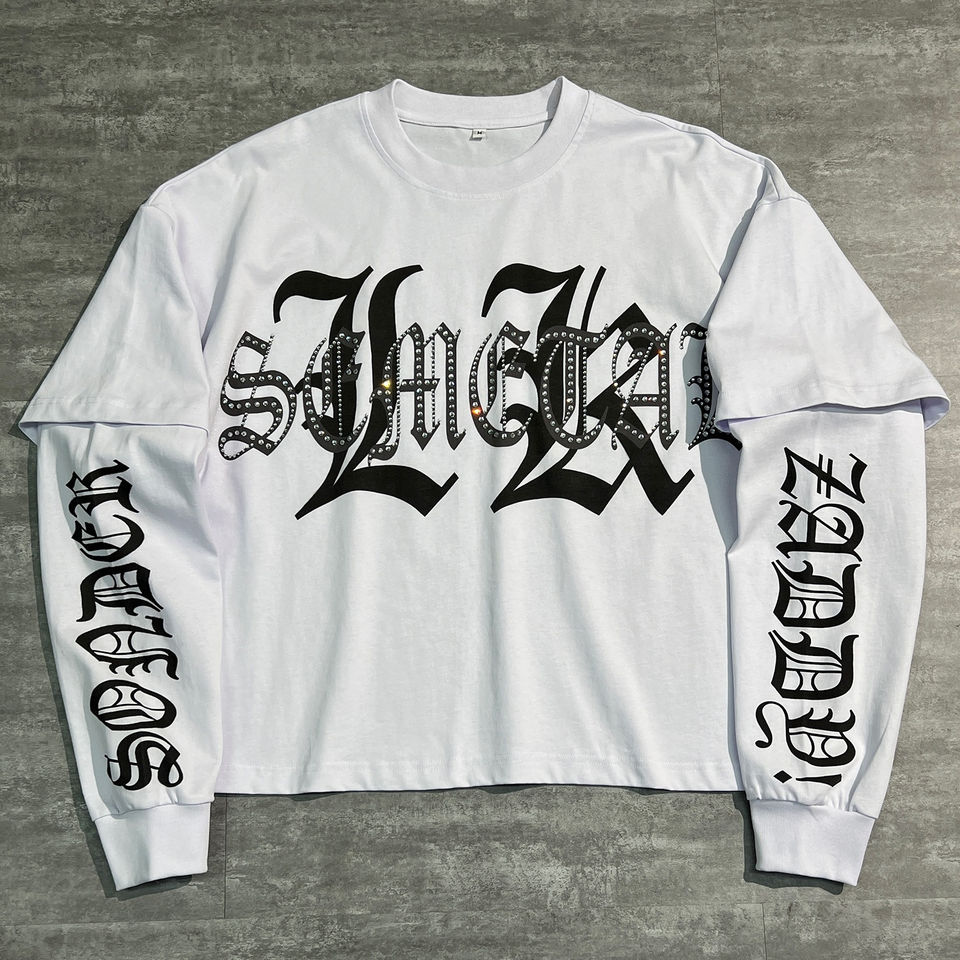 เสื้อถักผ้าฝ้ายพรีเมียม 100% ประดับคริสตัล สองชั้น แขนสั้น เป็นมิตรต่อสิ่งแวดล้อม ระบายอากาศได้ดี พิมพ์ลายตามสั่ง ดีไซน์เนอร์ ทรงปกติ