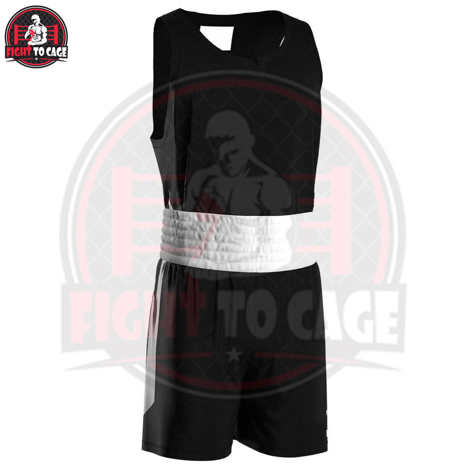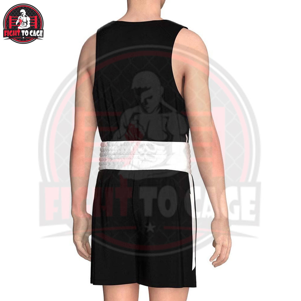 ชุดยูนิฟอร์มชกมวยผ้าซาตินผสมโพลีเอสเตอร์/สแปนเด็กซ์ พรีเมียม สีสันแบบคัลเลอร์บล็อก ชุดเสื้อกล้ามและกางเกงสำหรับนักมวยชาย แบบยืดได้