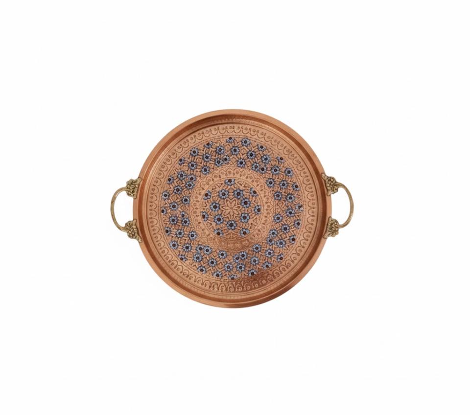 ถาดเสิร์ฟทองแดงแท้ 100% คุณภาพพรีเมียม ถาดโลหะตกแต่งทรงกลมตีมือ สำหรับงานแต่งงาน งานเลี้ยงอาหารค่ำที่บ้าน และงานปาร์ตี้
