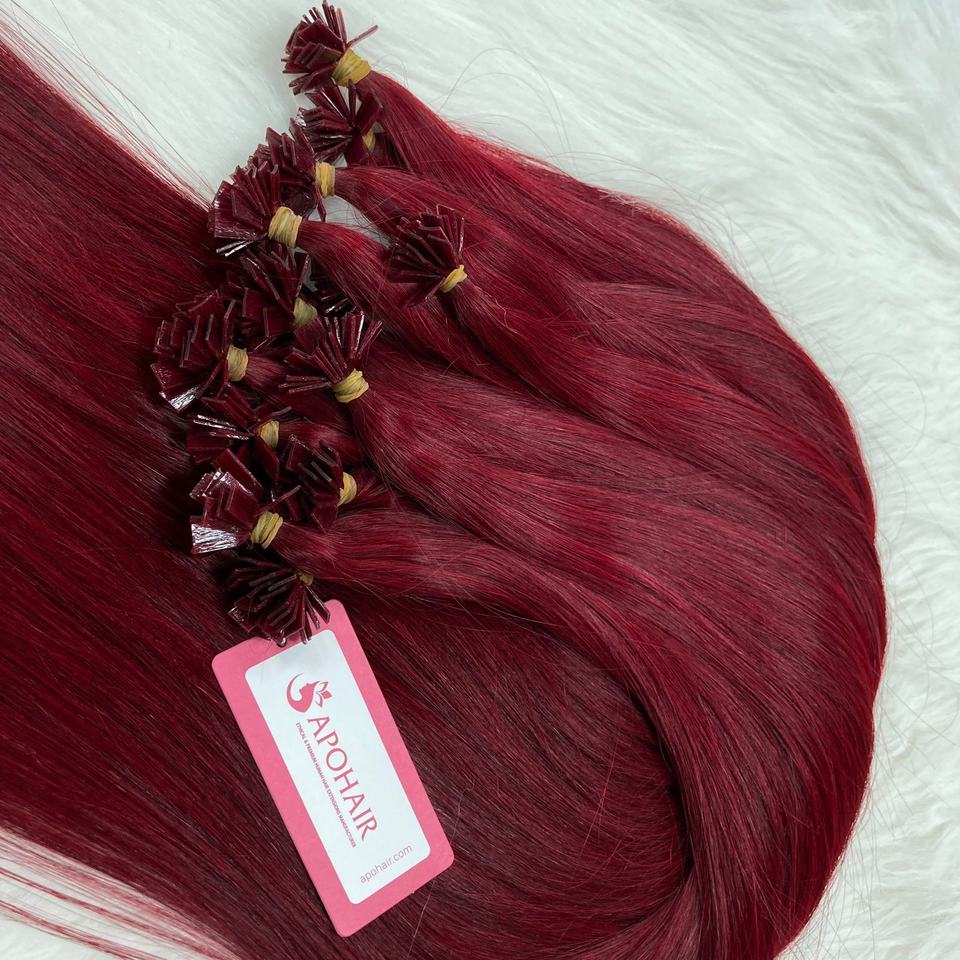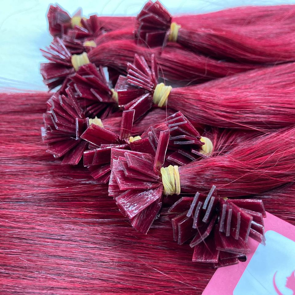 ผมต่อบริสุทธิ์เรมี่บราซิลเลี่ยน100ก. ปลายแบนสีแดงพร้อมเครื่องมือทำผมตรง