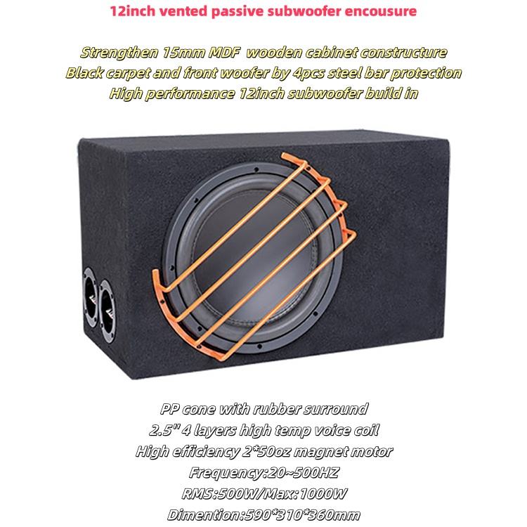 ตู้ลำโพงซับวูฟเฟอร์แบบ Passive สำหรับรถยนต์ ขนาด 12 นิ้ว ระดับพรีเมียม ผลิตจากโรงงาน OEM กำลังขับ RMS 500 วัตต์ ขายดี ลำโพงติดรถยนต์ ตู้ไม้ กำลังขับสูงสุด 1000 วัตต์