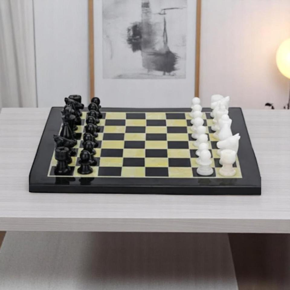กระดานหมากรุกแจสเปอร์หินอ่อนสีดำแบบพรีเมี่ยมขนาด12นิ้วพร้อมหมากรุก2นิ้วชุดเกมหินหรูหราสำหรับตกแต่งบ้าน