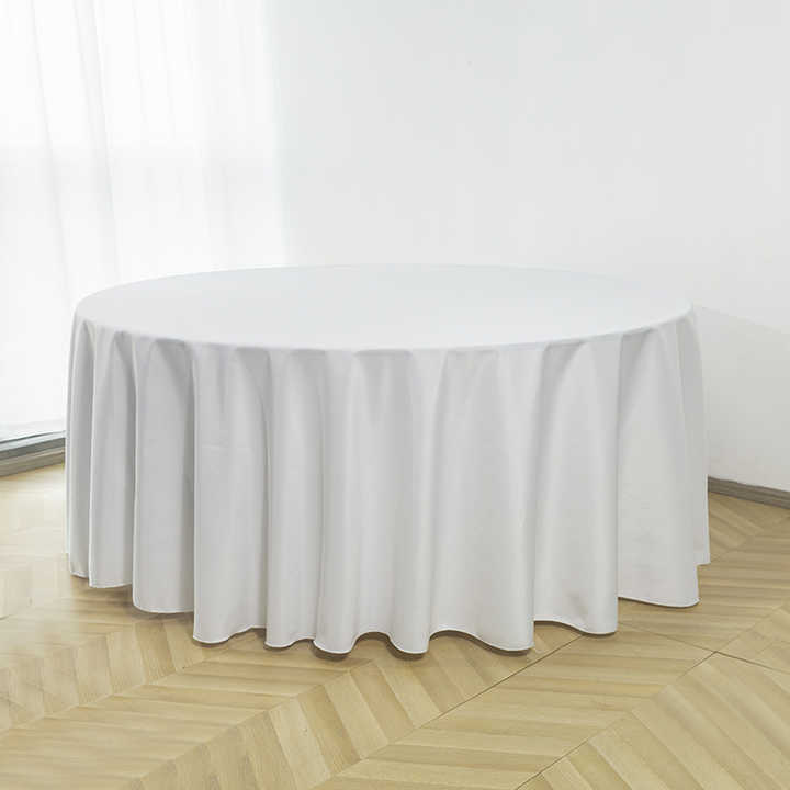 ผ้าคลุมโต๊ะทรงกลมแบบสแปนเด็กซ์สีขาว ขนาด 120 นิ้ว คุณภาพพรีเมียม ป้องกันคราบ ผลิตจากโพลีเอสเตอร์ สามารถปรับแต่งได้