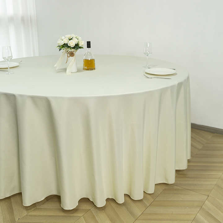 ผ้าคลุมโต๊ะทรงกลม ผ้าโพลีเอสเตอร์ผสมสแปนเด็กซ์ สีขาว ขนาด 120 นิ้ว ป้องกันคราบ พรีเมียม ปรับแต่งขนาดและสีได้ ซักล้างได้