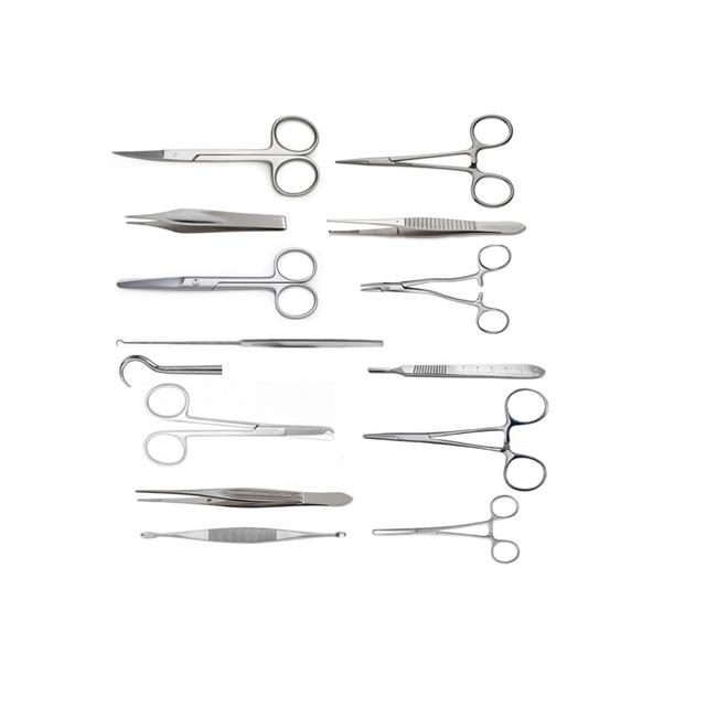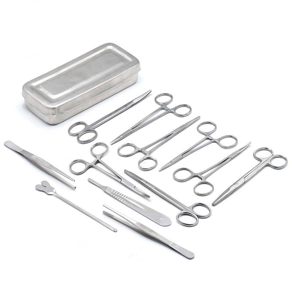 ชุดเครื่องมือผ่าตัดขนาดเล็กพื้นฐาน 13 ชิ้น ทำจากสแตนเลสคุณภาพพรีเมียม บรรจุในกล่อง 13 ชิ้น สำหรับใช้ในโรงพยาบาล