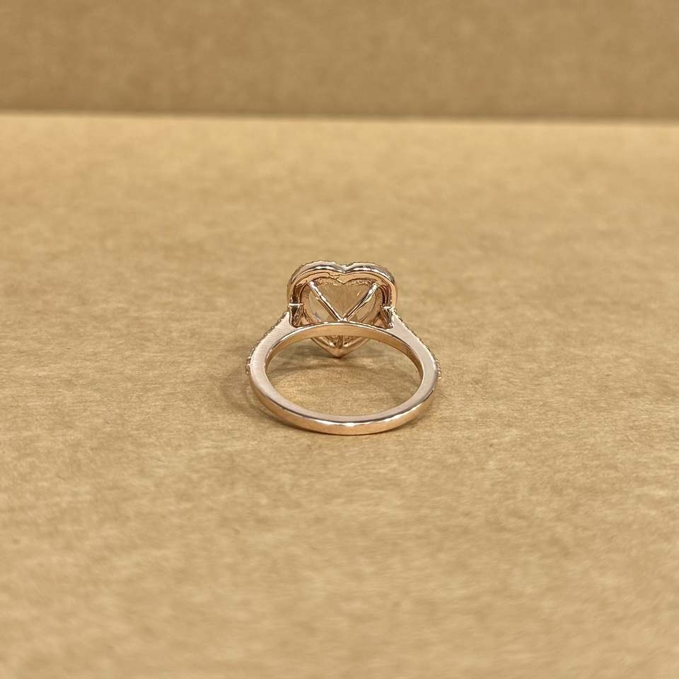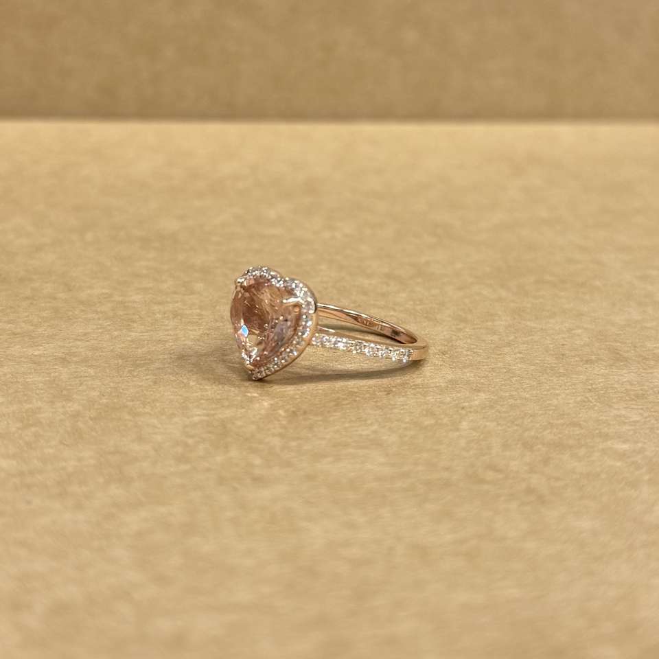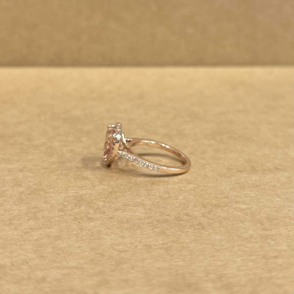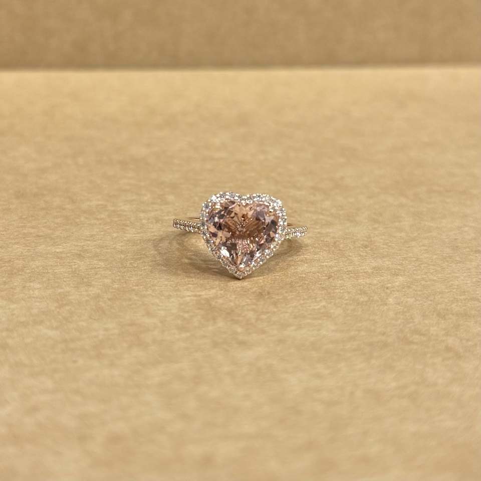 แหวนทองคำ 14K พรีเมียม ประดับมอร์แกไนต์ธรรมชาติทรงหัวใจสีชมพู 3.63 กะรัต พร้อมพลอยข้าง 0.52 กะรัต ดีไซน์เครื่องประดับเจ้าสาวสำหรับงานแต่งงาน
