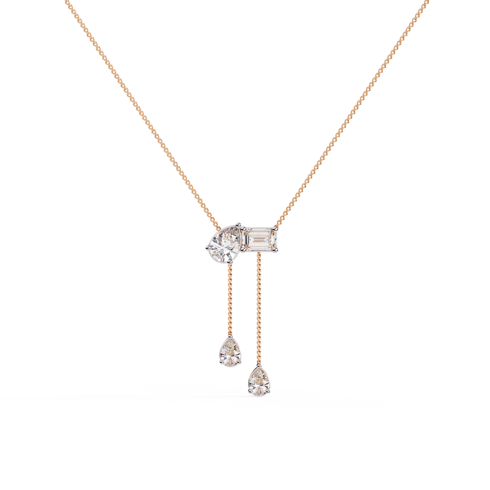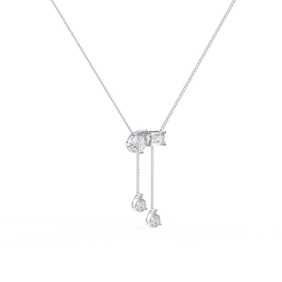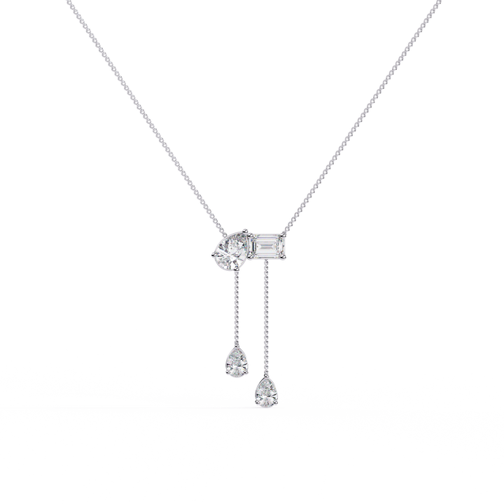 สร้อยคอเพชรทรงแฟนซีคัท ทองคำขาว 14K พรีเมียม ประดับเพชรแล็บโกรว์สีเหลืองและสีขาว รับรองโดย IGI คุณภาพ D E VS VVS เครื่องประดับหรูสำหรับผู้หญิง
