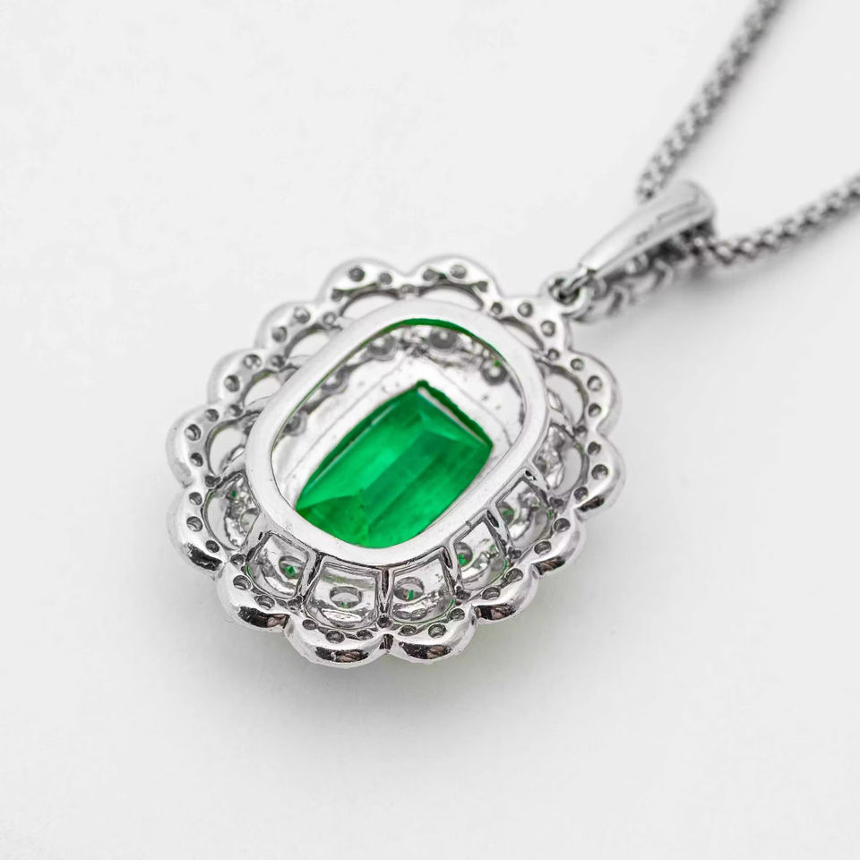 สร้อยคอทองคำขาว 14K พรีเมียม ประดับมรกต 2 กะรัต เพชรเพาะเลี้ยงแบบฝังหนามเตย รับรองโดย IGI เหมาะสำหรับเป็นของขวัญวันครบรอบและเทศกาลต่างๆ