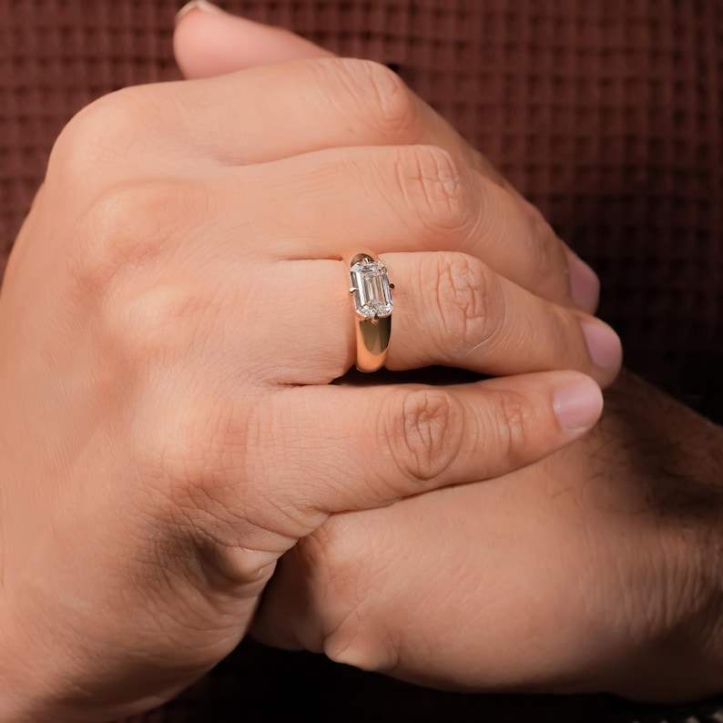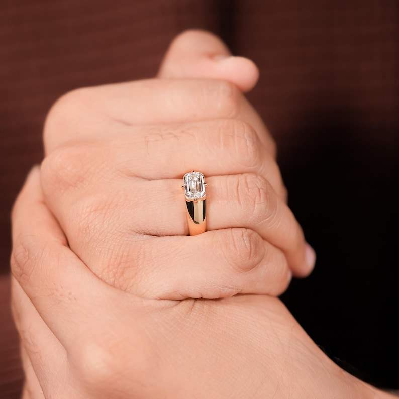 แหวนแต่งงานวินเทจสำหรับผู้ชาย ทองคำแท้ 14k พรีเมียม ประดับเพชรแล็บโกรว์ทรงเอเมอรัลด์ 1.50 กะรัต E VVS พร้อมใบรับรอง IGI