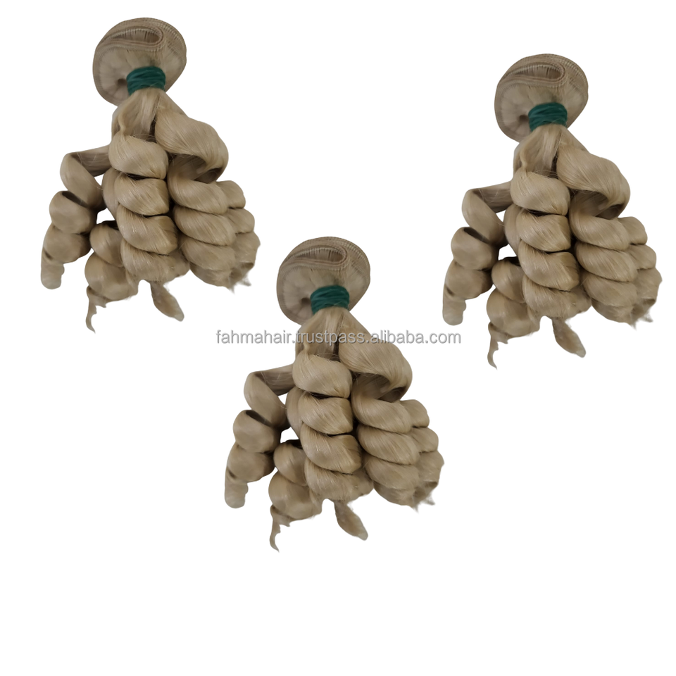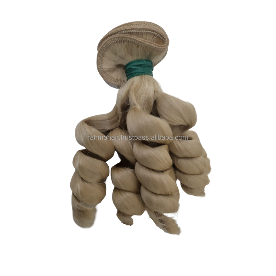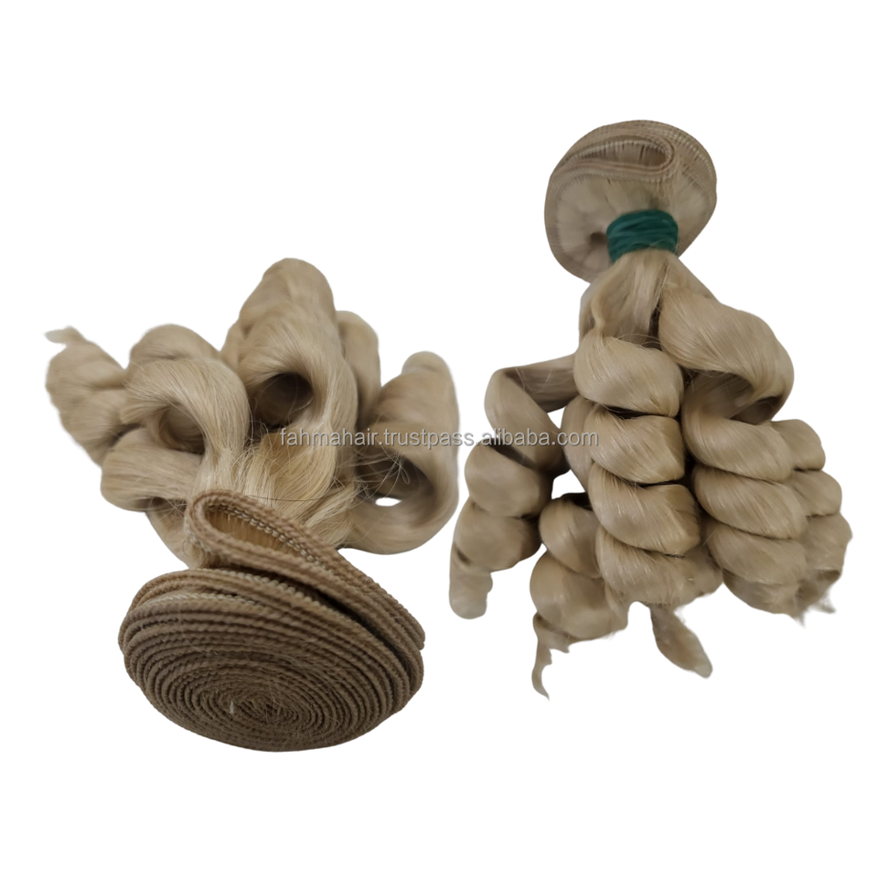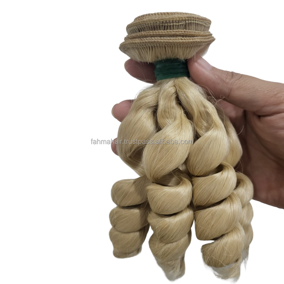 ผมต่อแบบพรีเมียม 1B สีบลอนด์ ผมแท้ 100% เรมี่ เวอร์จิ้น อินโดนีเซีย แบบเต็มความยาว เย็บสองชั้น จัดเรียงเกล็ดผม ด้านหน้าเป็นลอนเด้ง