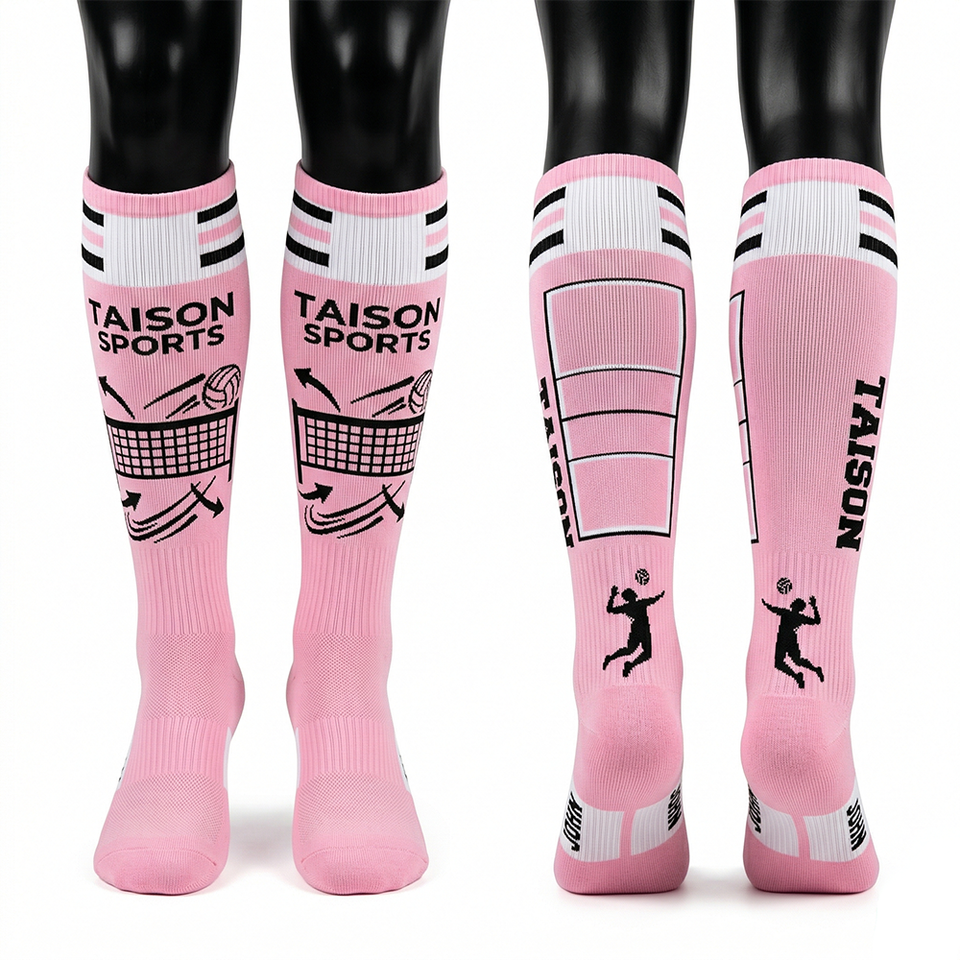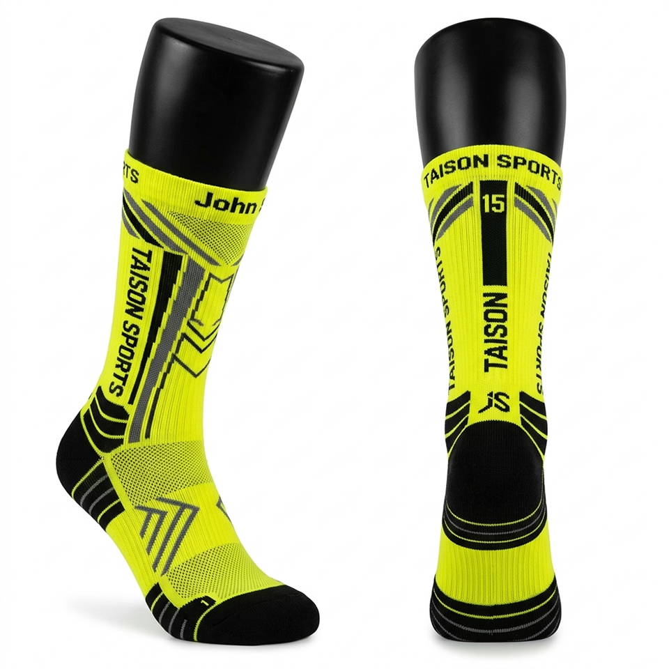 ถุงเท้าวอลเลย์บอลผู้ชาย พรีเมียม 200 GSM โพลีเอสเตอร์ ไนลอน สแปนเด็กซ์ ระบายอากาศได้ดี สีเขียวดำ ดีไซน์ลายแผง โลโก้แบบจาการ์ดสั่งทำพิเศษ