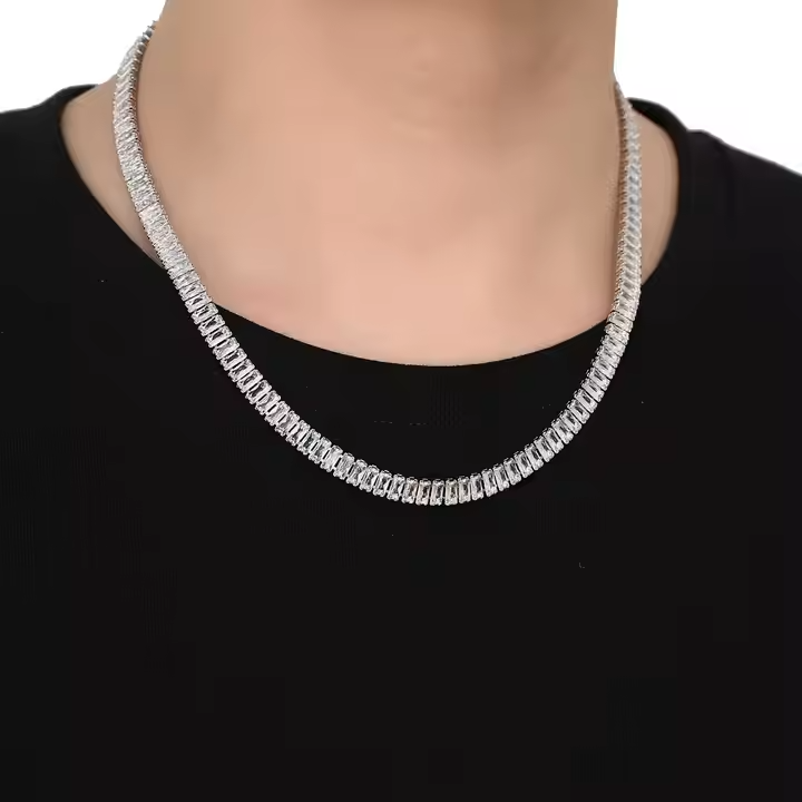 สร้อยคอเทนนิสโมอิสซาไนต์แบบฮิปฮอปประดับเพชร GRA Certificated Pass Diamond Tester ขนาด 2 มม. 5 มม. วัสดุเงินแท้ 925 แบบโซ่เชื่อมต่อ