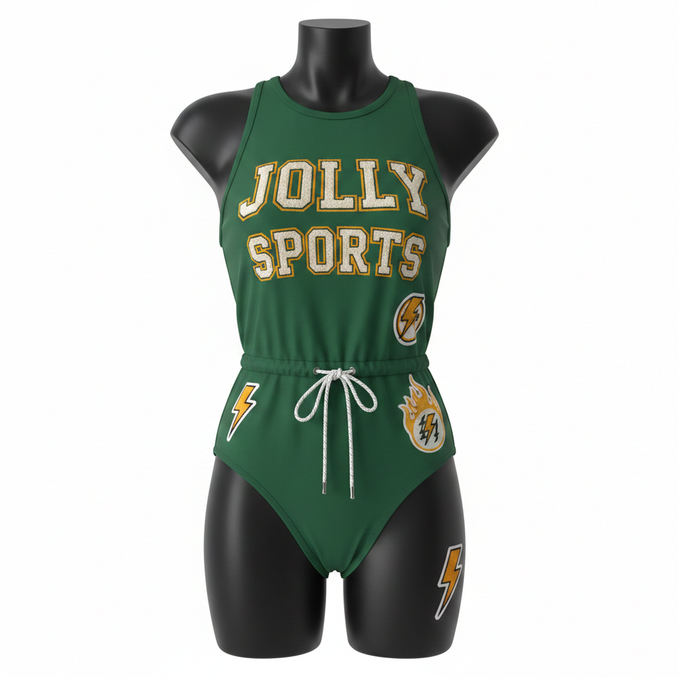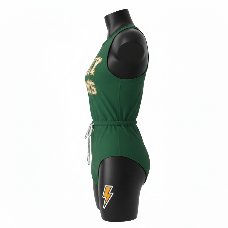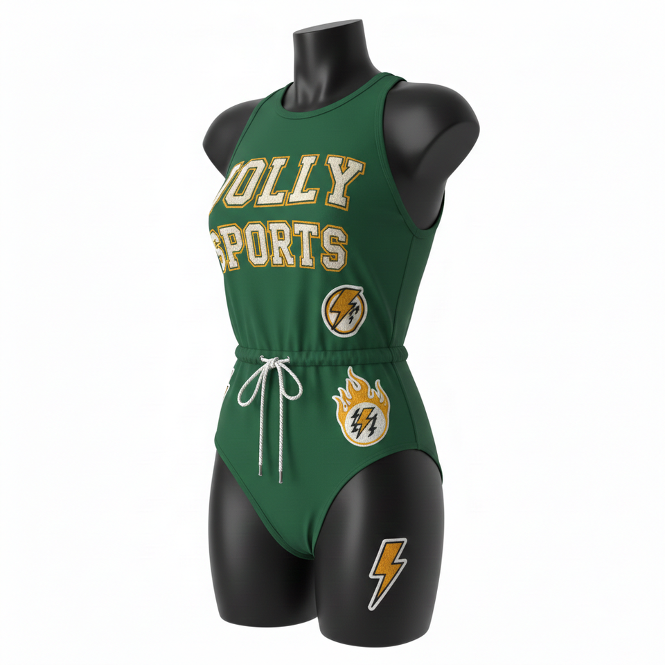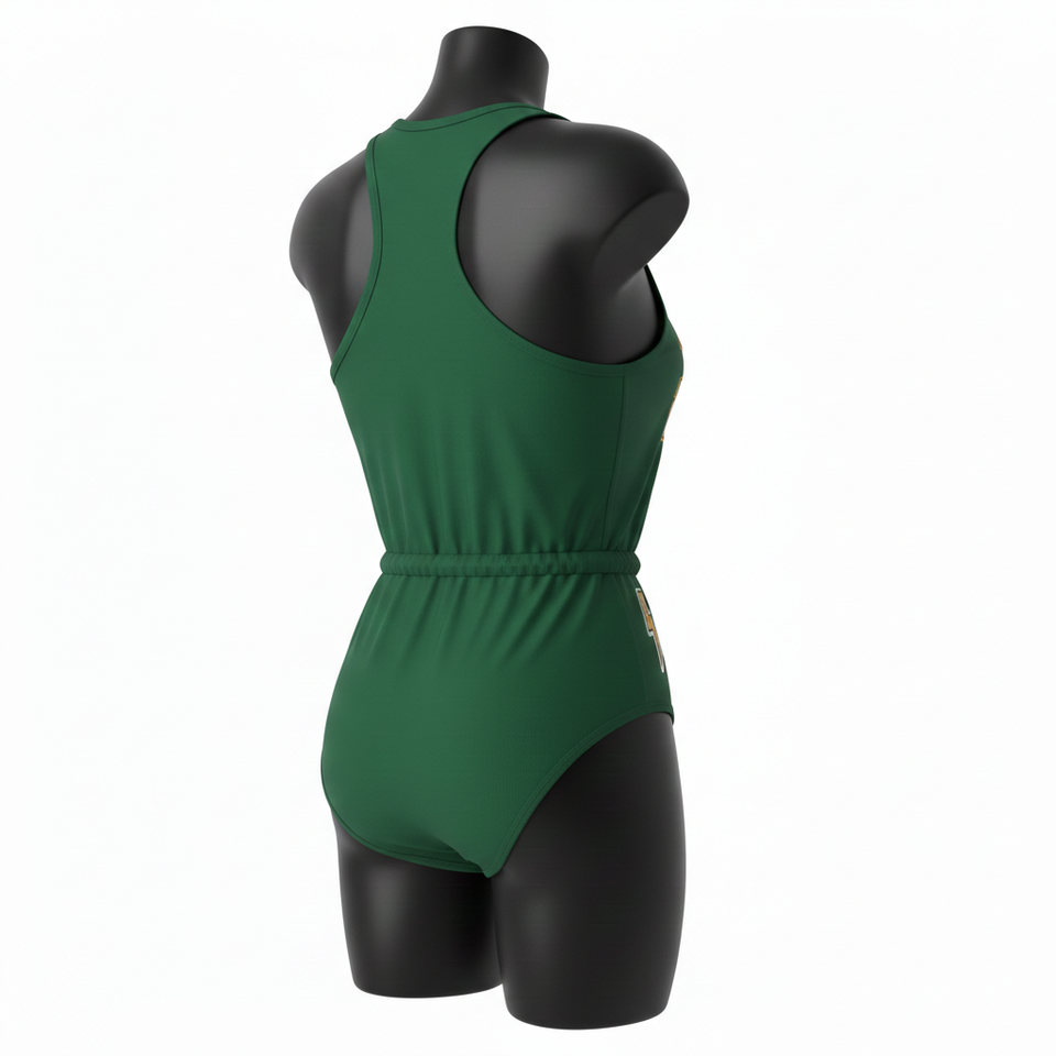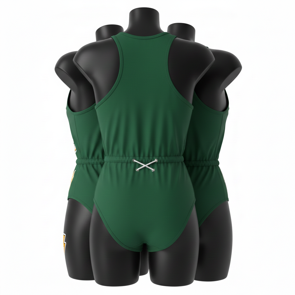 ชุดว่ายน้ำพรีเมียม 230 GSM ผ้าโพลีเอสเตอร์ผสมสแปนเด็กซ์ สีเขียว เนื้อผ้านุ่มยืดหยุ่น ปักโลโก้แบบแอพพลิเค่ตามสั่ง สำหรับผู้หญิง