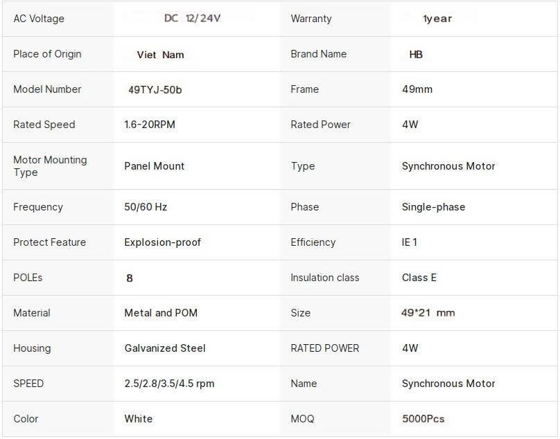 มอเตอร์ซิงโครนัสขนาดเล็กที่มีความเร็วคงที่