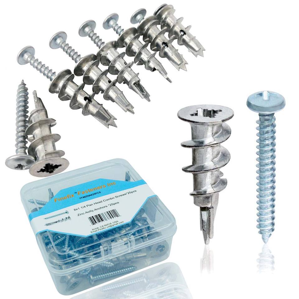 ชุดสกรูยึดผนังแห้งแบบพรีเมียม 25 ชิ้น เหล็กชุบสังกะสี เจาะตัวเองได้ แข็งแรงทนทาน ขนาด 5/8 นิ้ว สำหรับยึดติดผนังคอนกรีต