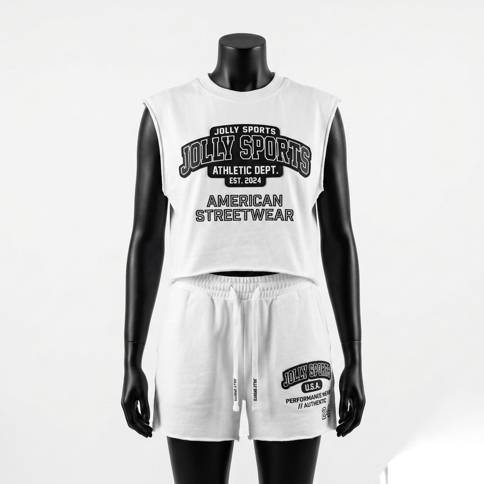 Premium 300 GSM Cotton Sleeveless T Shirt And Shorts Set Women White Streetwear Custom Print Logo Women's Sets