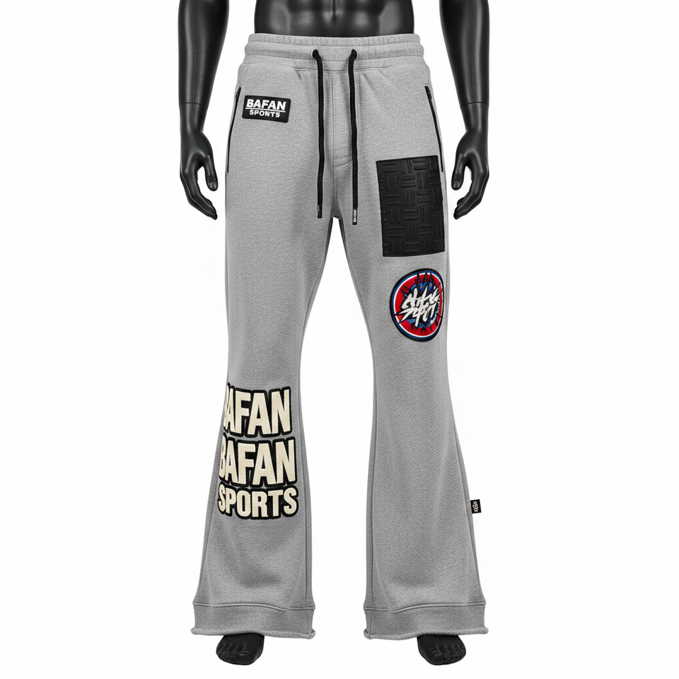 กางเกงจ็อกเกอร์ผู้ชายผ้าฟลีซโพลีเอสเตอร์ GSM สีเทาผ้าปะติดและกางเกงผู้ชายซักด้วยยางเกรดพรีเมี่ยม300