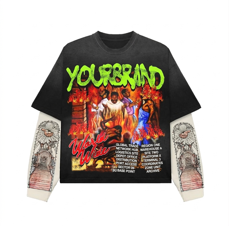 Premium 300 GSM cotton double layer shirt black oversized cherub graphic DTG print custom logo Double Layer Shirts