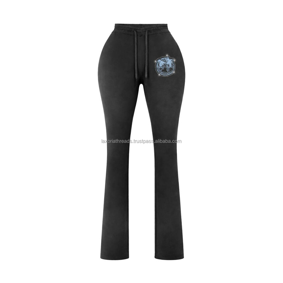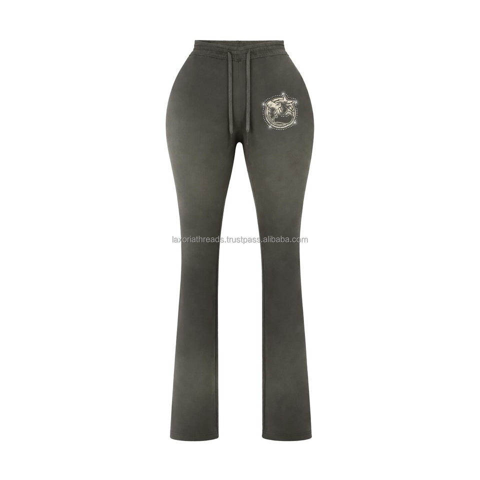 กางเกงทรงขาบานผ้าฟลีซผสมคอตตอนโพลีเอสเตอร์ 300 GSM ระดับพรีเมียม สีเทาเข้ม เนื้อผ้านุ่ม ทรงขาตรง ดีไซน์ปักโลโก้ตามสั่ง
