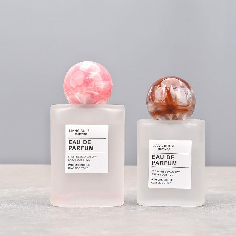 ขวดน้ำหอมแบบพกพาขนาด 30 มล. 50 มล. แบบขวดฝ้าพร้อมหัวฉีดแบบกดและฝาเกลียว สำหรับบรรจุภัณฑ์เครื่องสำอาง