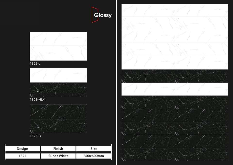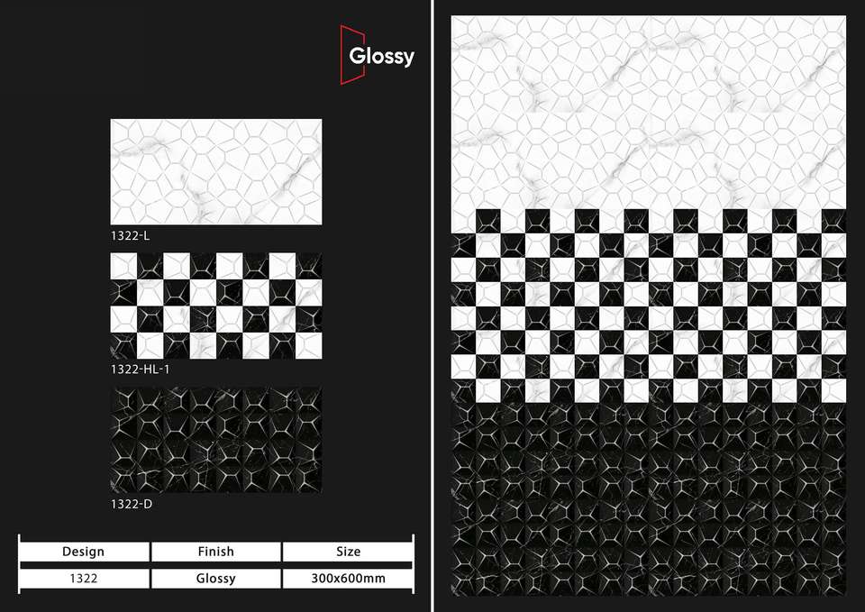 กระเบื้องบุผนังเซรามิกแบบมันเงา ขนาด 30x60 ซม. (300x600 มม., 12x24 นิ้ว) คุณภาพพรีเมียม สำหรับตกแต่งผนังภายในห้องน้ำและห้องครัวสไตล์โมเดิร์น