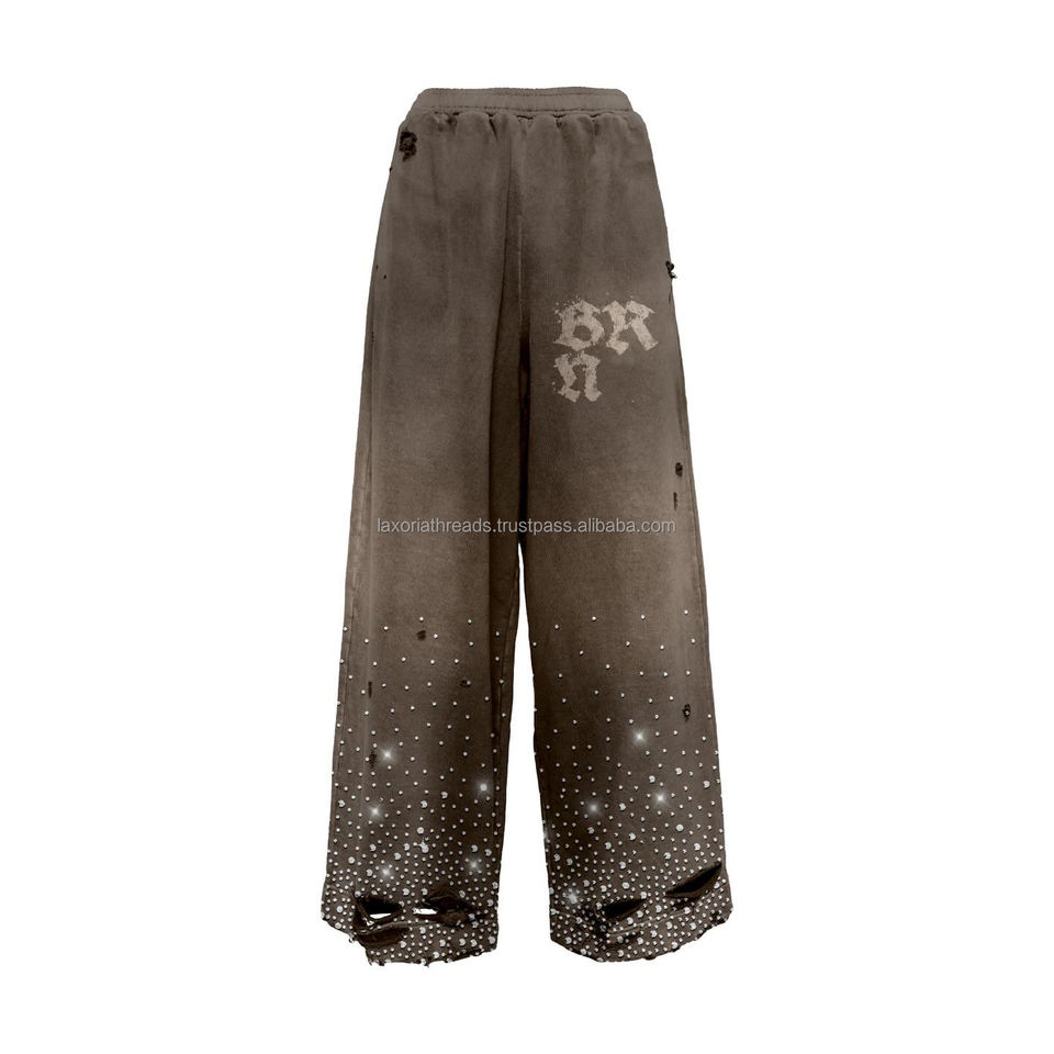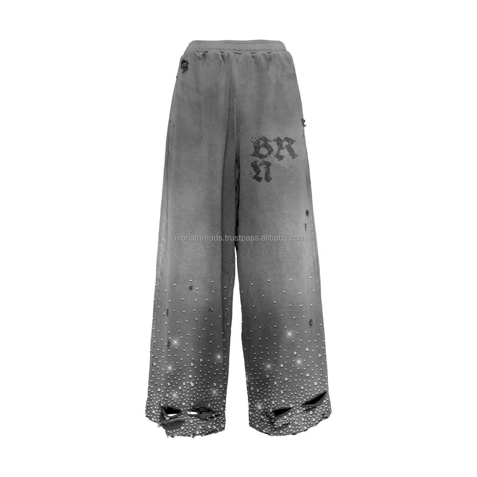 กางเกงวอร์มผ้าฟลีซผสมคอตตอนโพลีเอสเตอร์ 320 GSM พรีเมียม สีเทาฟอก ผ้านุ่ม โลโก้ลายขาดแบบติดด้วยความร้อน