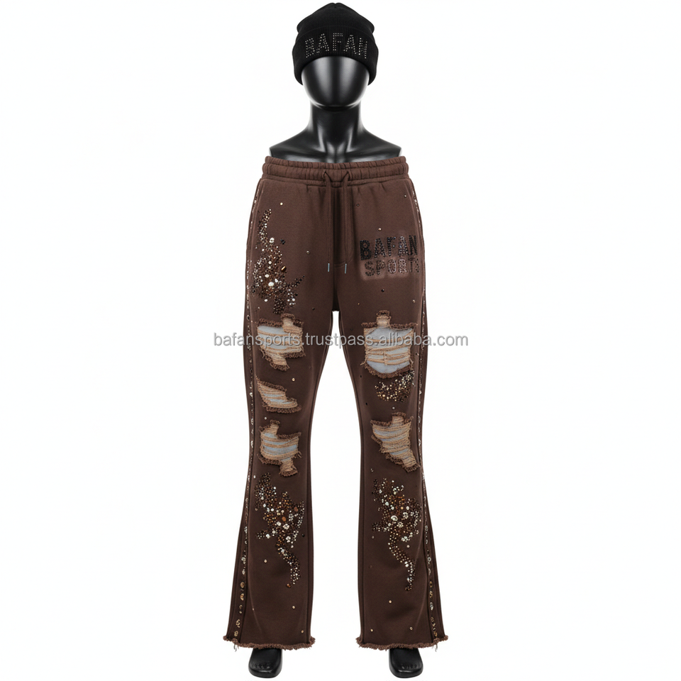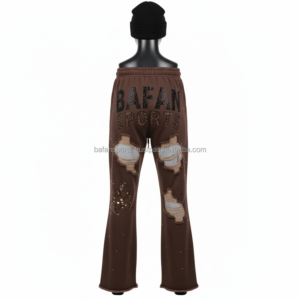 กางเกงวอร์มขาบานผ้าฝ้าย GSM สีน้ำตาล380พรีเมี่ยมซักโลโก้ได้ตามต้องการ
