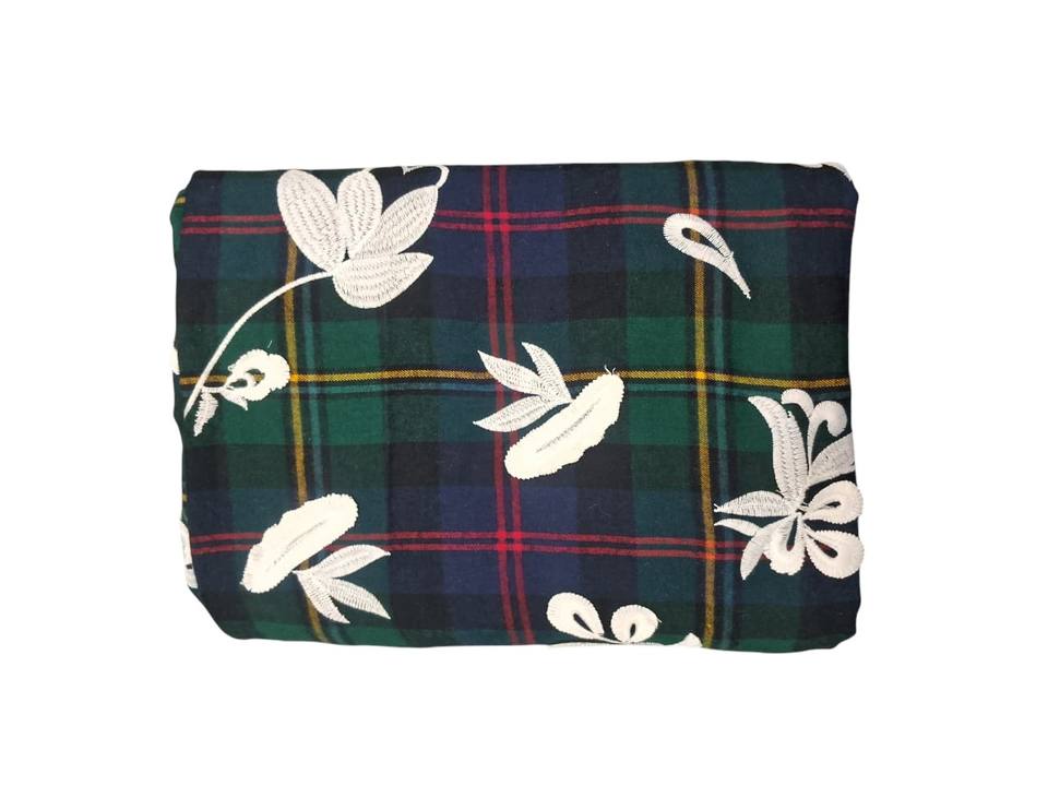 3D Applique Cotton Checked Floral Embroidered Fabr