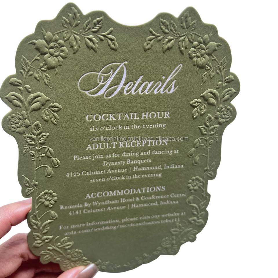 Premium 3D Embossing and Letterpress Business Card Custom Logo Offset Printing on Kraft Paper Invitation for Weddings