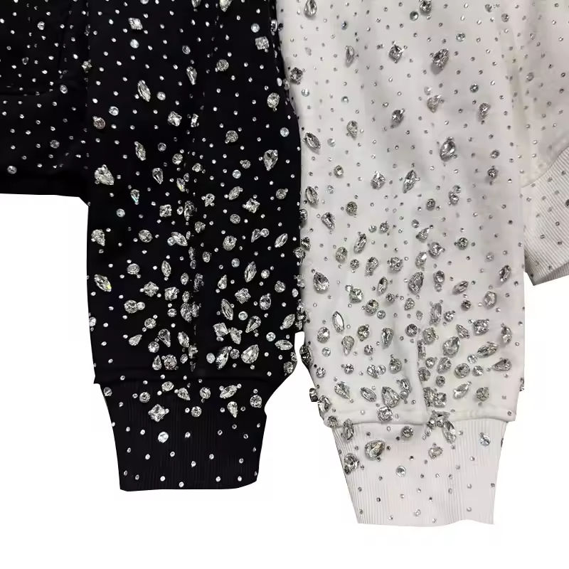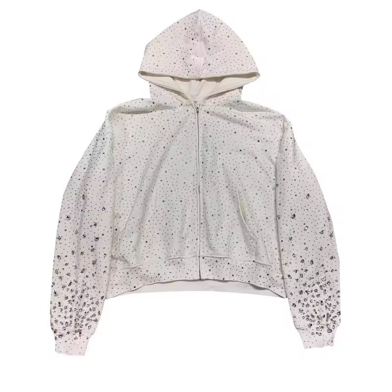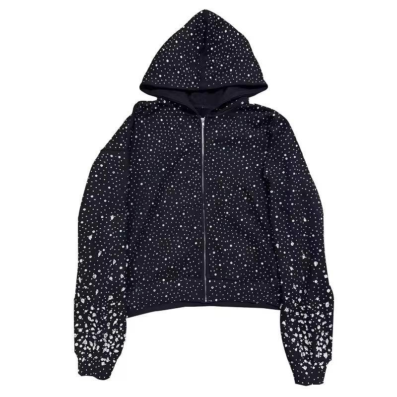 เสื้อมีฮู้ดติดพลอยเทียมสำหรับผู้ชาย400GSM พรีเมี่ยมล้างและมีซิปโอเวอร์ไซส์