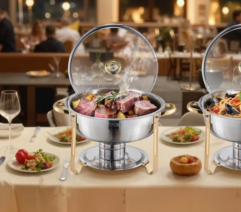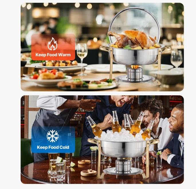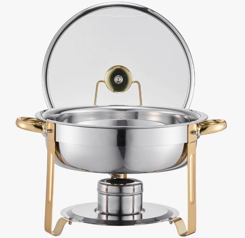 ชุดอุ่นอาหารบุฟเฟ่ต์สแตนเลสทรงกลมสีทอง ขนาด 5 ควอร์ต พรีเมียม จำนวน 4 ชิ้น ราคาดีที่สุด