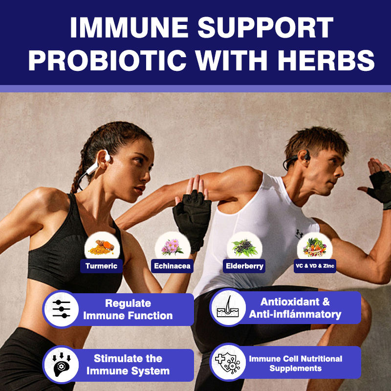 วิตามินซี, สังกะสี, วิตามิน D3, โปรไบโอติกคอมเพล็กซ์ระดับพรีเมียม, การผสมผสานภูมิคุ้มกันที่เป็นกรรมสิทธิ์, เส้นใยพรีไบโอติกอินทรีย์, สมุนไพรผสมดีท็อกซ์และทำความสะอาด