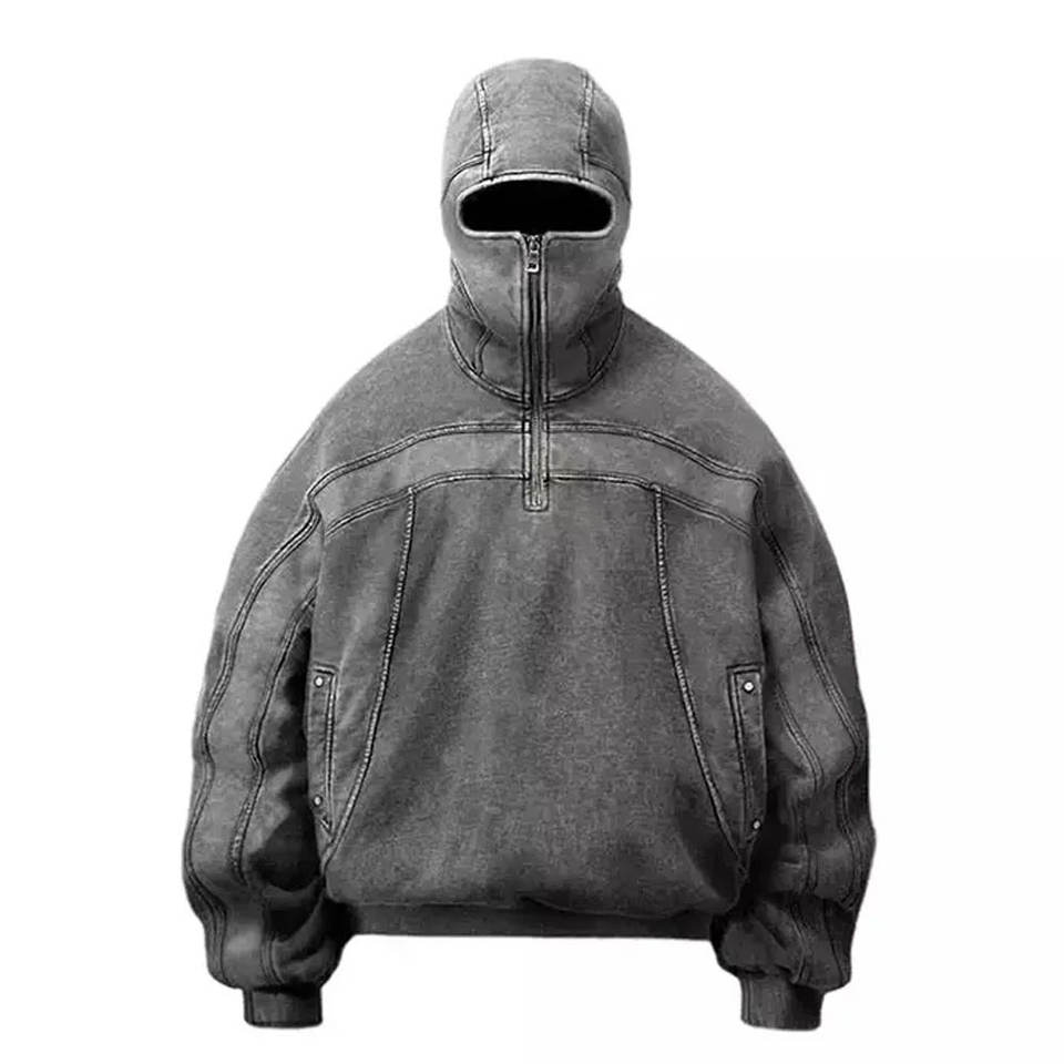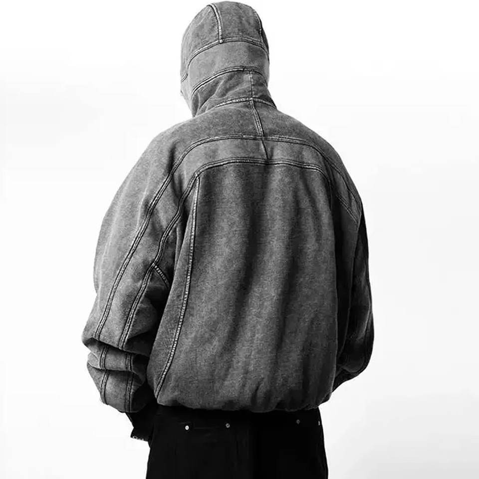 เสื้อฮู้ดดี้พรีเมียม 500GSM ทรงดรอปโชว์เดอร์ ล้างสีแบบแอซิดวอช ปิดหน้าด้วยฮู้ด ซิปครึ่งตัว – ผ้าฝ้ายหนานุ่มสไตล์วินเทจ ทรงโอเวอร์ไซส์ สตรีทแวร์สไตล์เรโทร