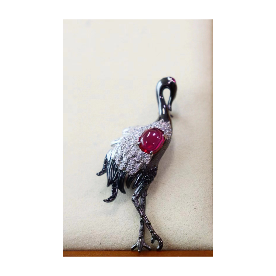 เข็มกลัดนกกระเรียนญี่ปุ่น ดีไซน์หรูหรา ประดับเพชรคิวบิกเซอร์โคเนีย ระดับพรีเมียม 5A บนตัวเรือนเงินแท้ 925 เหมาะสำหรับตกแต่งเสื้อผ้า งานปาร์ตี้ งานแต่งงาน หรือเป็นของขวัญ
