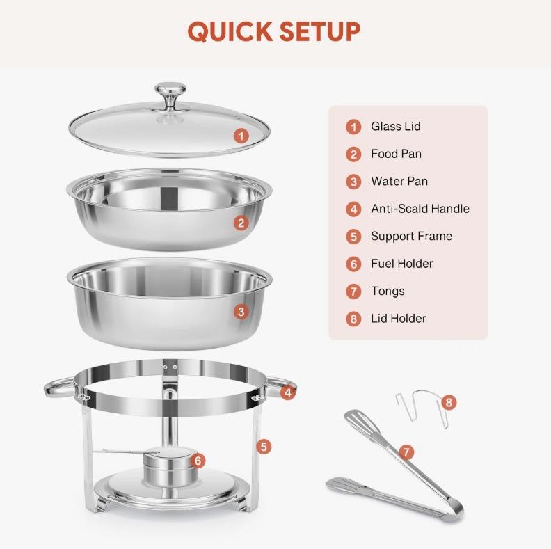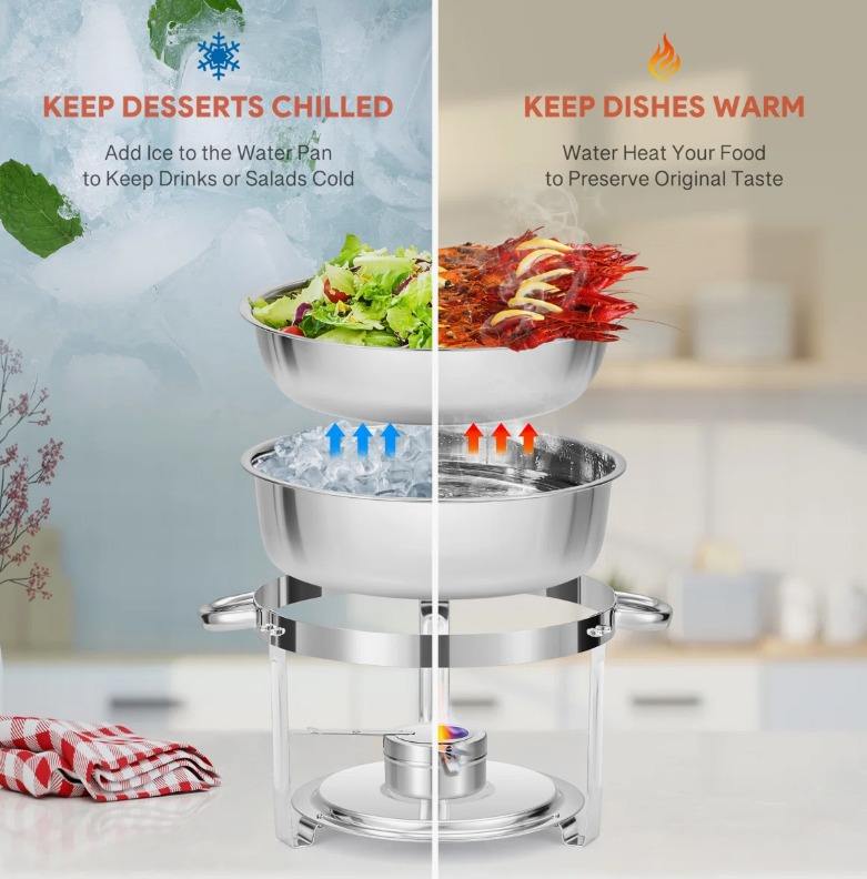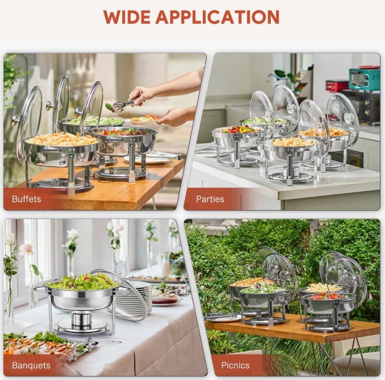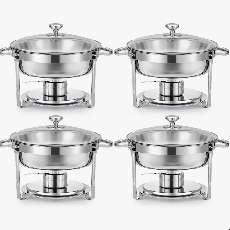 ชุดอุ่นอาหารทรงกลมพรีเมียม 6 ควอร์ต วัสดุสแตนเลส พร้อมฝาแก้ว 4 ชิ้น ราคาสุดคุ้ม