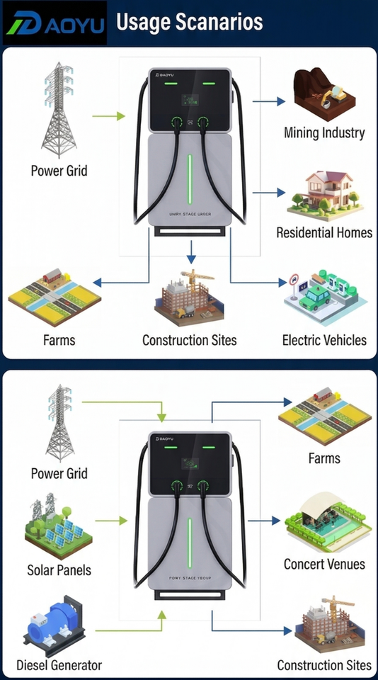 ระบบชาร์จรถยนต์ไฟฟ้าพลังงานแสงอาทิตย์แบบพรีเมียมรุ่นใหม่ Daoyu 60kWh พร้อมระบบจัดเก็บพลังงาน รองรับ CCS2 CCS1 GBT DC Fast Charger OCPP ควบคุมผ่านแอปพลิเคชันอัจฉริยะ เหมาะสำหรับที่อยู่อาศัยและชุมชน