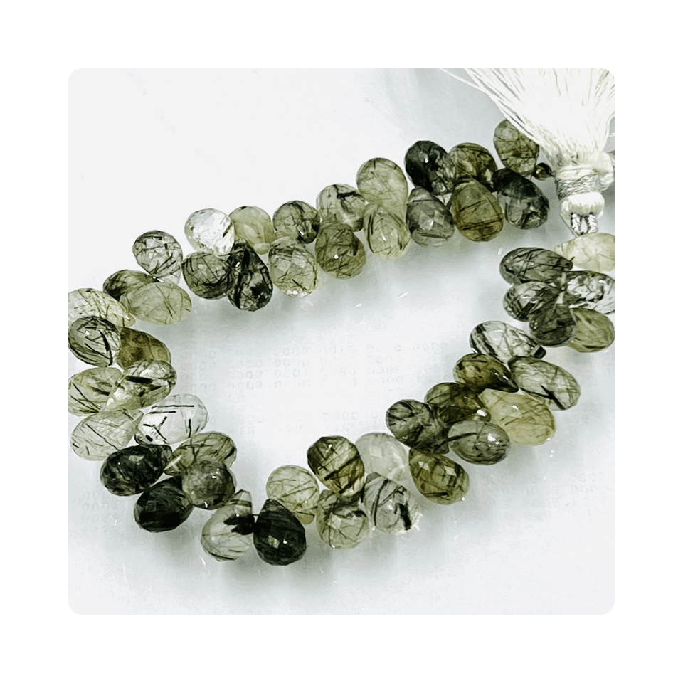 พลอยควอตซ์รูไทล์สีเขียวธรรมชาติทรงหยดน้ำเจียระไนแบบบริโอเลต ขนาดสั่งทำพิเศษ พร้อมใบรับรองจากผู้ตรวจสอบอิสระ Alif