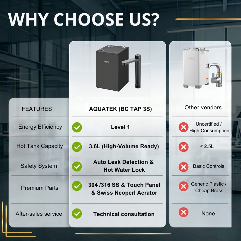 เครื่องทำน้ำร้อนใต้ซิงค์พรีเมียม 750 วัตต์ AQUATEK BC TAP 3S ความจุ 3.6 ลิตร ประหยัดพลังงานระดับ 1 เหมาะสำหรับโรงแรมและบ้าน