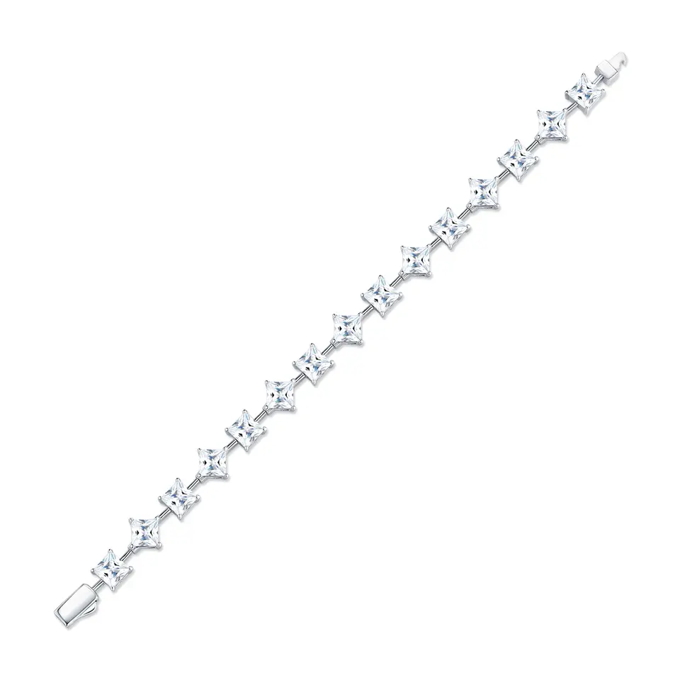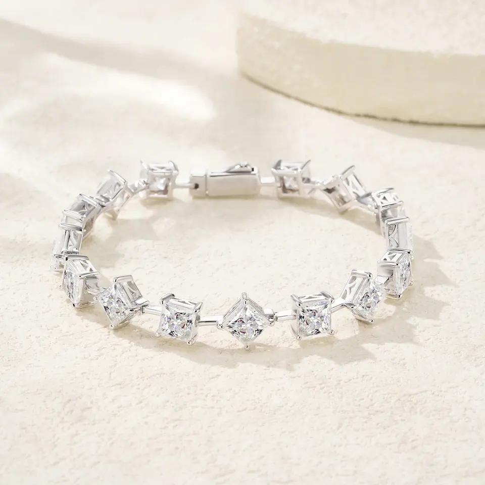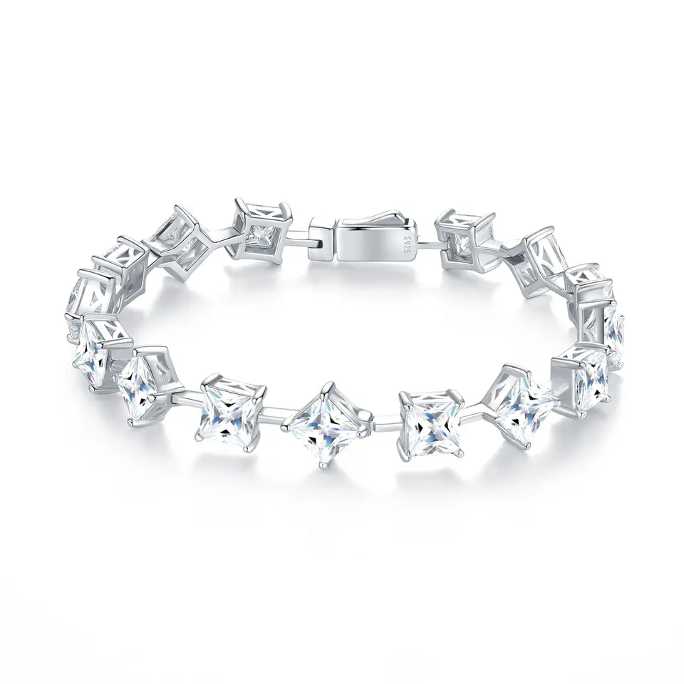 Premium 925 Sterling Silver Princess Cut VVS D Color Bezel Set Moissanite Tennis Bracelet Elegant Luxury Unisex Jewelry