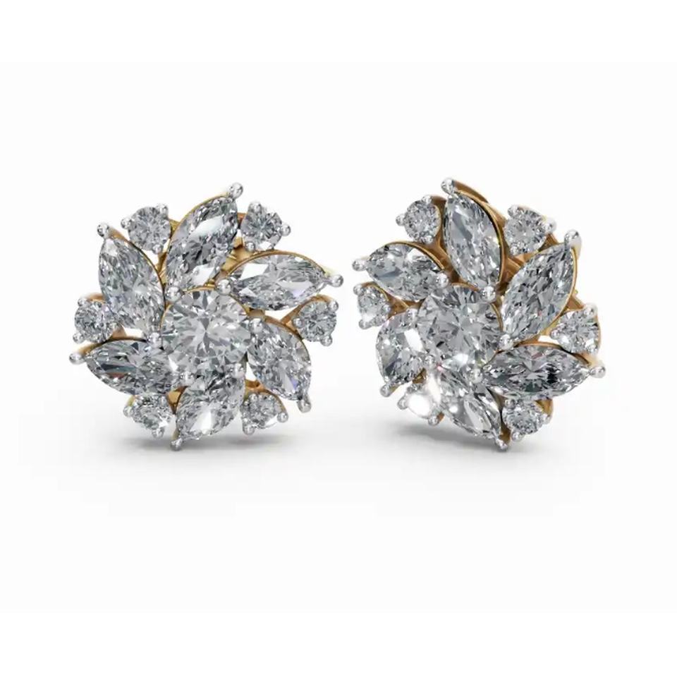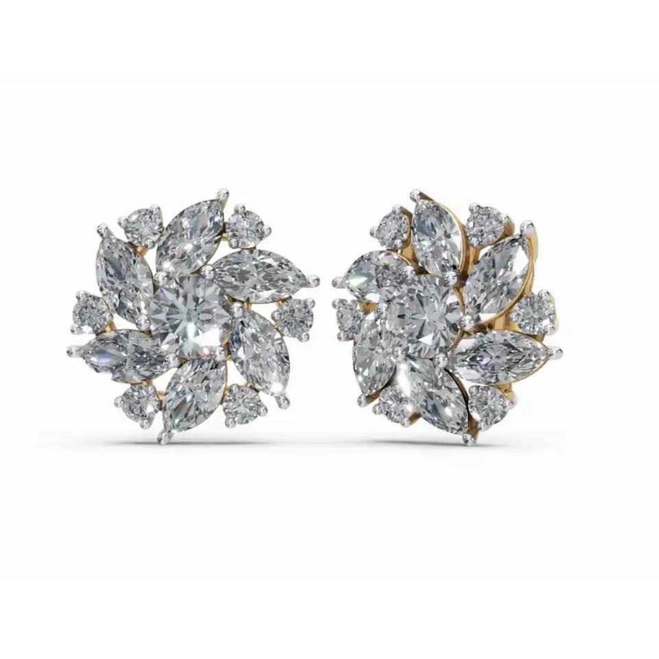 ต่างหูเพชรทรงกลมและทรงมาร์คีส์ แวลเรีย แกรนด์ เพทัล ทองคำ 9KT พรีเมียม เครื่องประดับเพชรเลี้ยงในห้องปฏิบัติการ ขายส่ง B2B