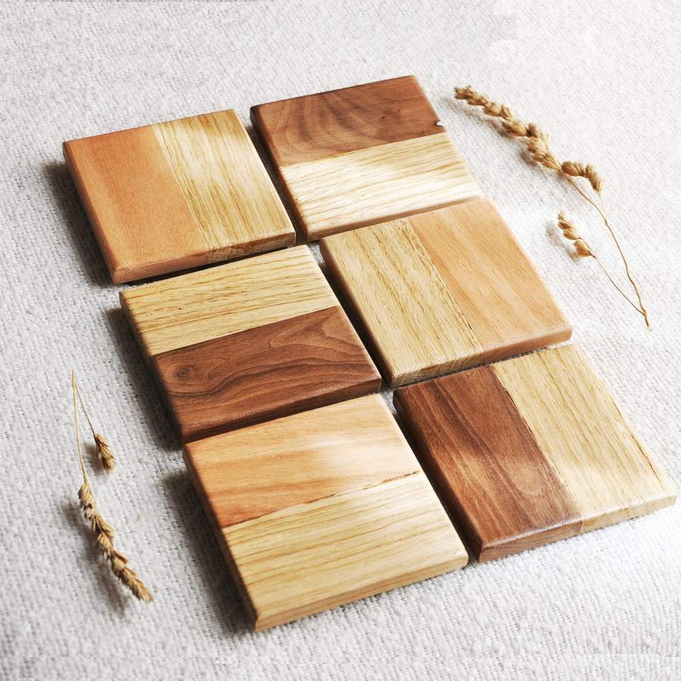 แผ่นรองแก้วไม้กระถินเทศคุณภาพพรีเมียม สำหรับเสิร์ฟชา กาแฟ และเครื่องดื่ม ปกป้องพื้นผิวโต๊ะ