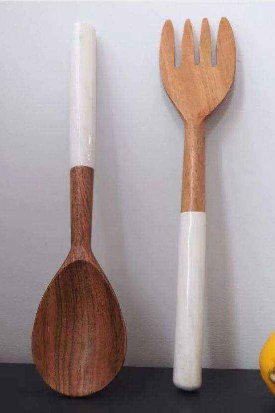 ชุดช้อนสลัดไม้กระถินเทศพรีเมียม ดีไซน์ทันสมัย ใช้ซ้ำได้ น้ำหนักเบา ด้ามจับเคลือบลายพิมพ์ สีตามสั่ง ขัดเงาแบบซาติน