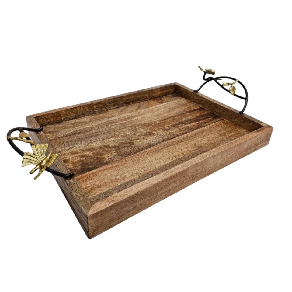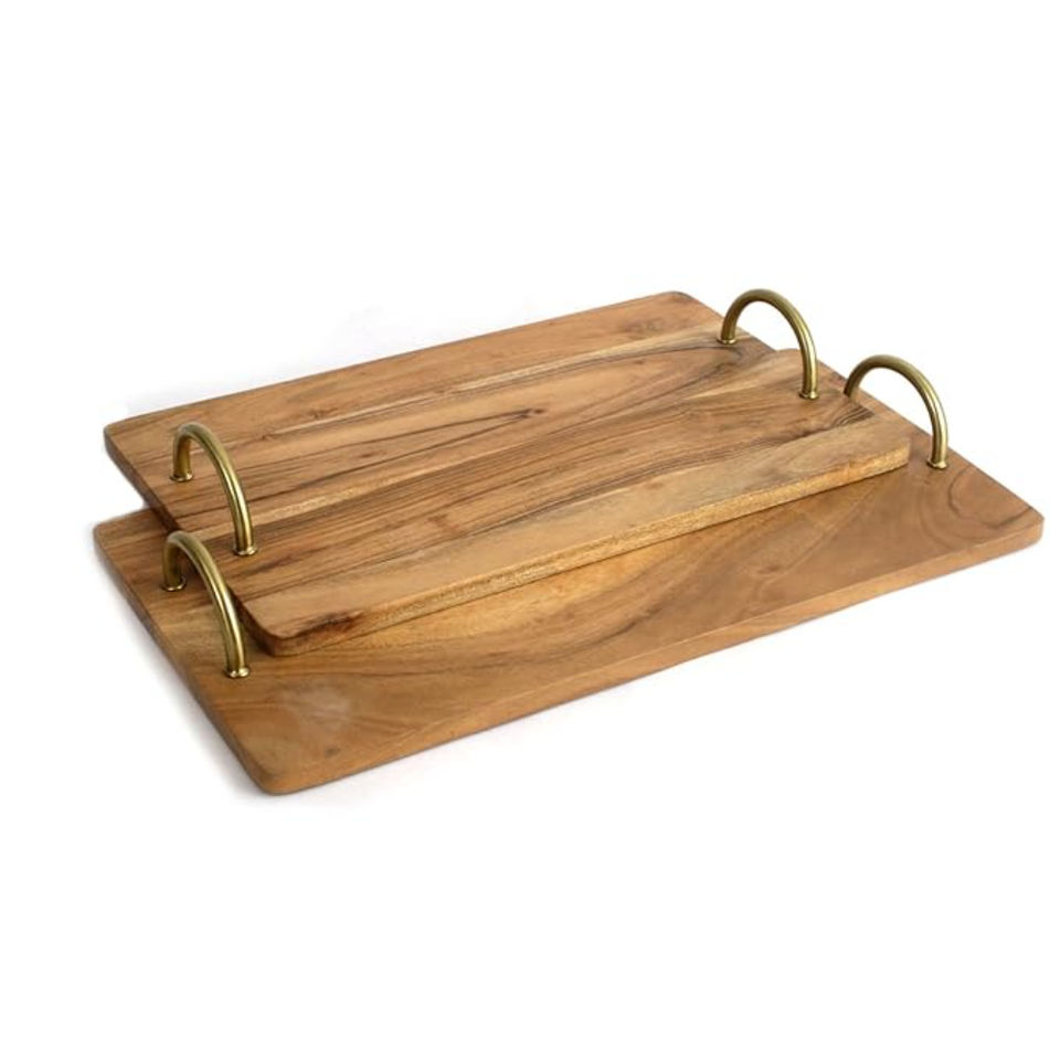 ชุดถาดเสิร์ฟไม้อะคาเซียพรีเมี่ยมพร้อมที่จับสีทองหรูหราเหมาะสำหรับรับประทานอาหารในห้องครัวและของตกแต่งบ้านราคาถูก