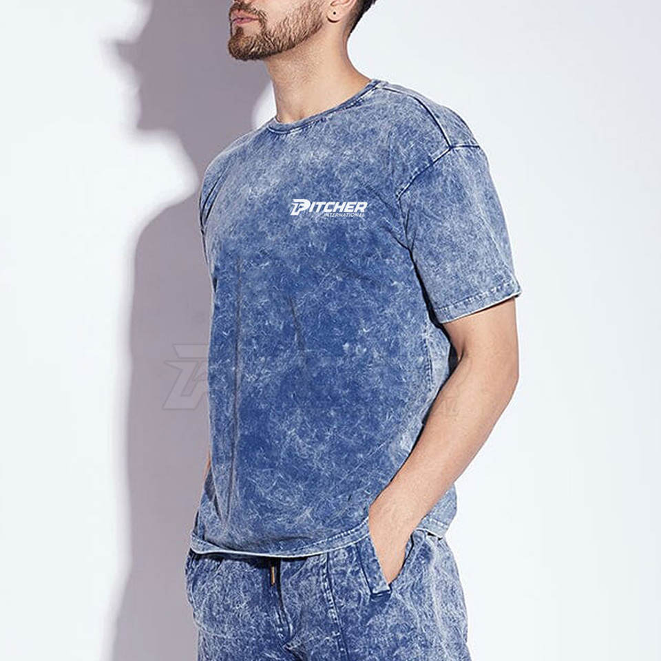 เสื้อยืดพรีเมียมทรงแอซิดวอชสำหรับผู้ชาย สไตล์โมเดิร์นสตรีท ผ้าระบายอากาศได้ดี สวมใส่สบาย เหมาะสำหรับชุดลำลองประจำวัน