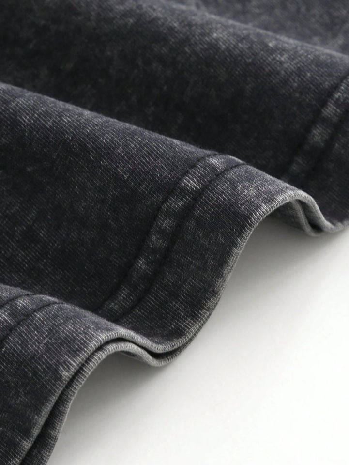 เสื้อยืดฟอกสีกรดสำหรับผู้ชายและผู้หญิงดีไซน์วินเทจที่ได้รับแรงบันดาลใจจากการออกแบบให้มีสไตล์โอเวอร์ไซส์คอกลมปกคอนุ่มซีด